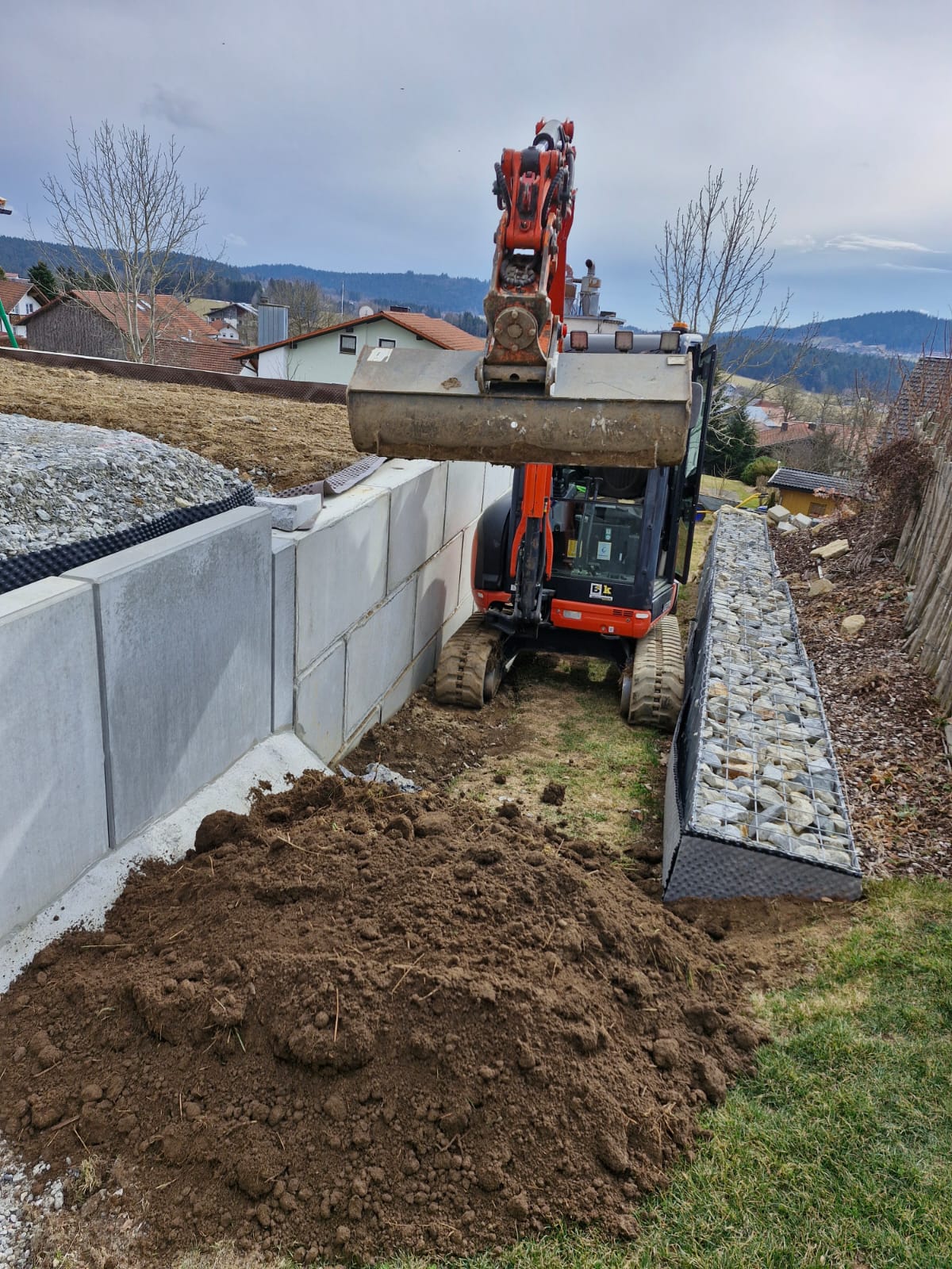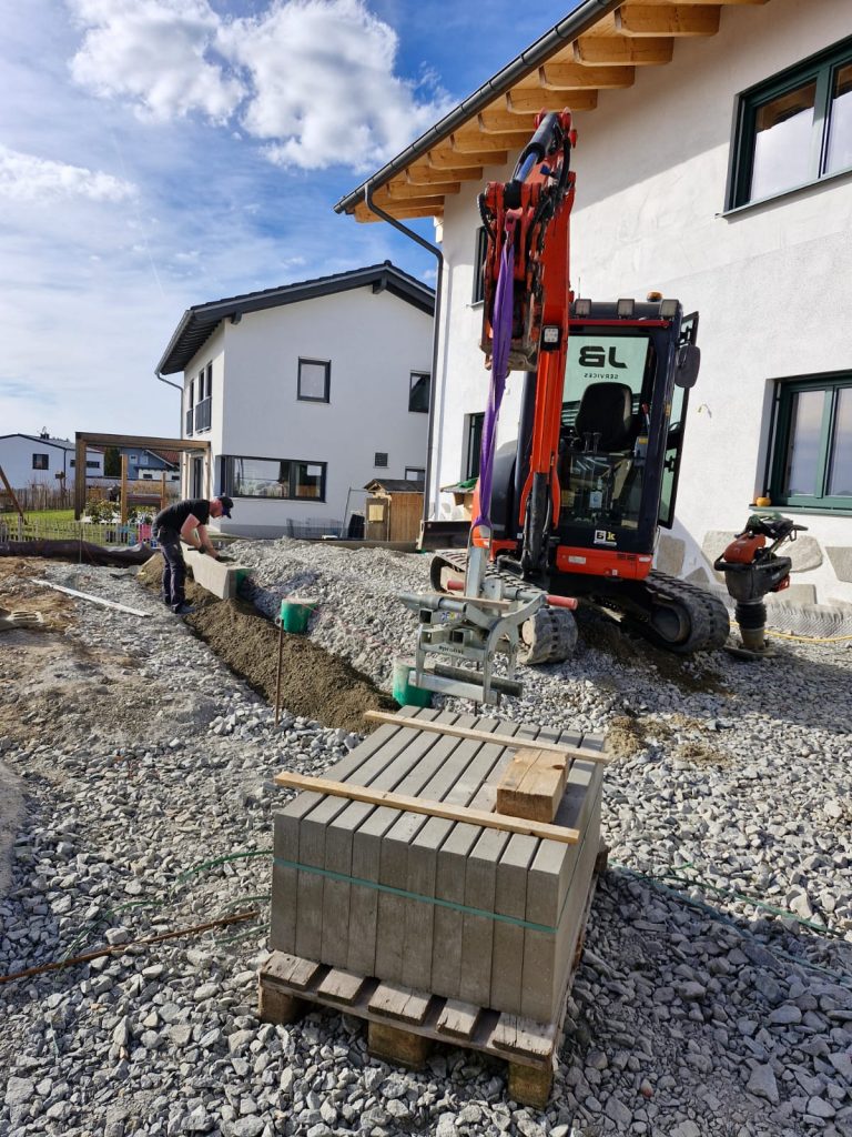 Wir gestalten Ihren Außenbereich genau nach Ihren Vorstellungen und verwirklichen Ihre Wünsche in den Bereichen Terrassenbau aus Naturstein, Errichtung von Gartenmauern oder Gestaltung von Wegen und Zufahrten. Wir übernehmen auch Geländeanpassungen, die Humussierung oder den Aushub für Sie.