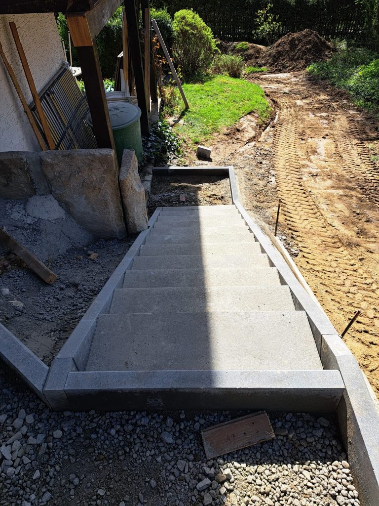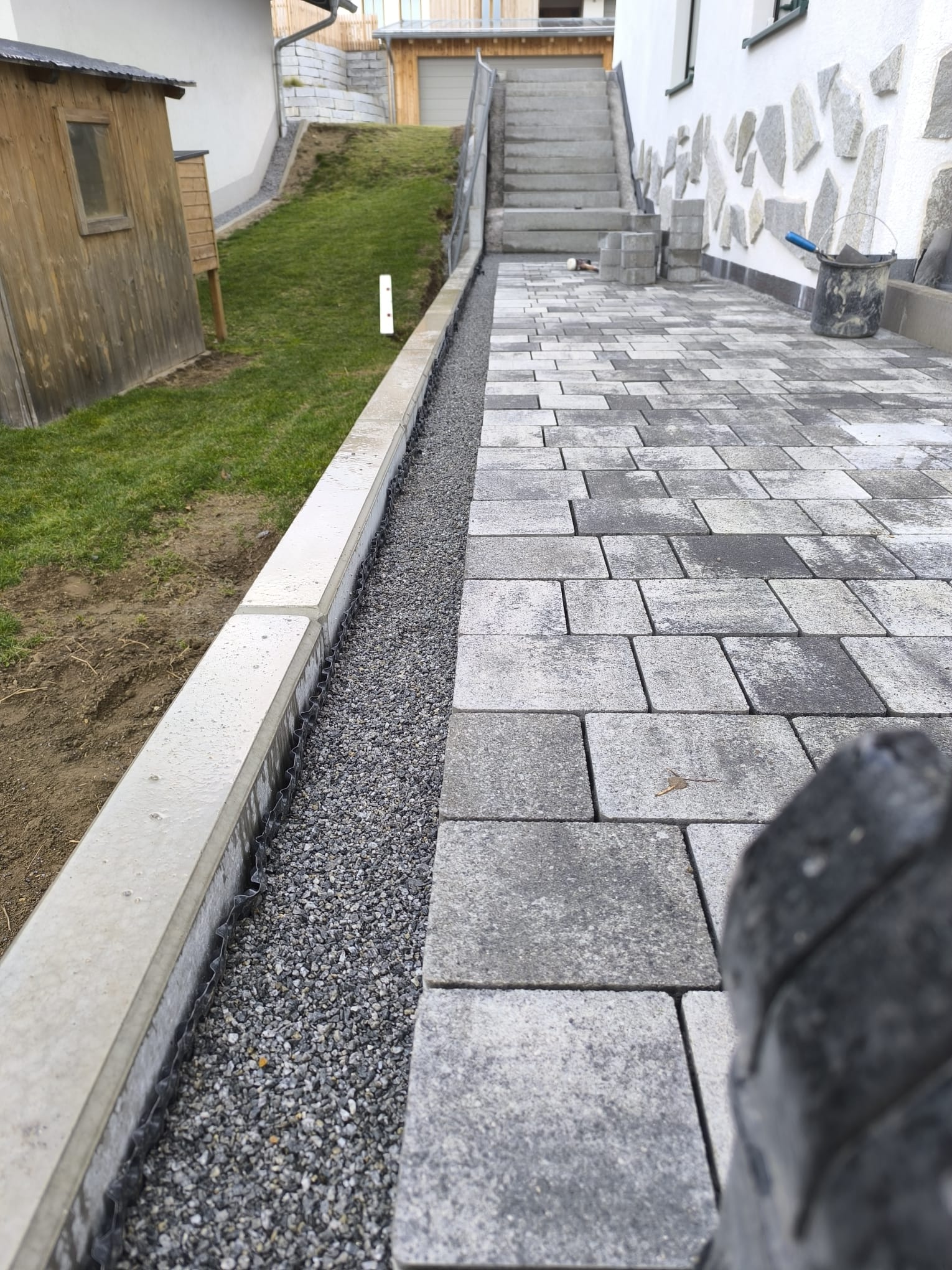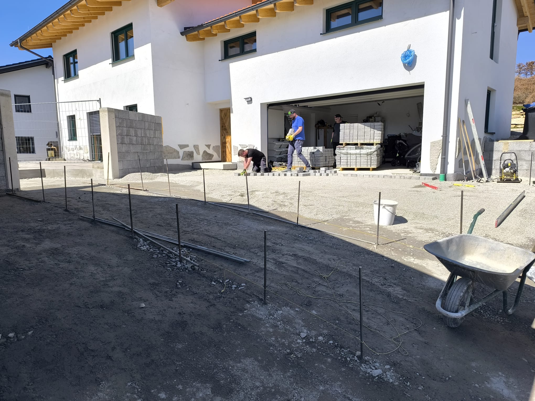 Beim Erstellen einer Natursteinauer incl Treppe, Pflasterarbeiten bei verschiedenen Steigungen, Setzen von Fundamenten für Garage und Zaun, Fertigstellung der Aussenanlage mit Ziersteinen und integriertem Beet, um nur ein Paar Beispiele zu nennen, wurden unsere Vorstellungen so umgesetzt, dass wir uns sicher sind, dass diese Abschnitte der Aussenanlage für die nächten Jahrzehnte halten werden.
