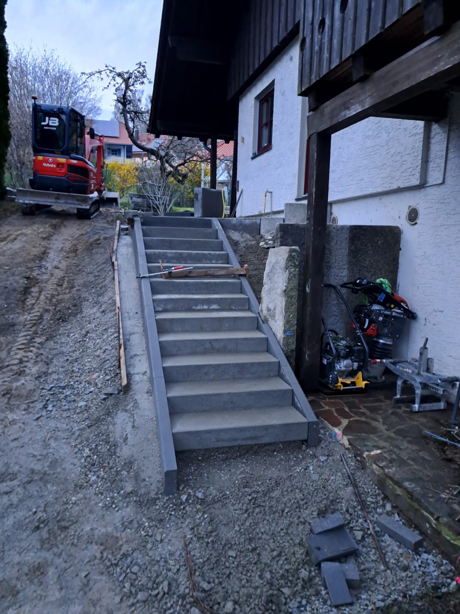 Wir gestalten Ihren Außenbereich nach Ihren Vorstellungen – funktional und ansprechend. Ob Terrassen aus Naturstein, Gartenmauern, Wege oder Zufahrten: Wir setzen Ihr Projekt fachgerecht um. Auch Geländeanpassungen, Humusierung und Aushubarbeiten übernehmen wir zuverlässig für Sie.